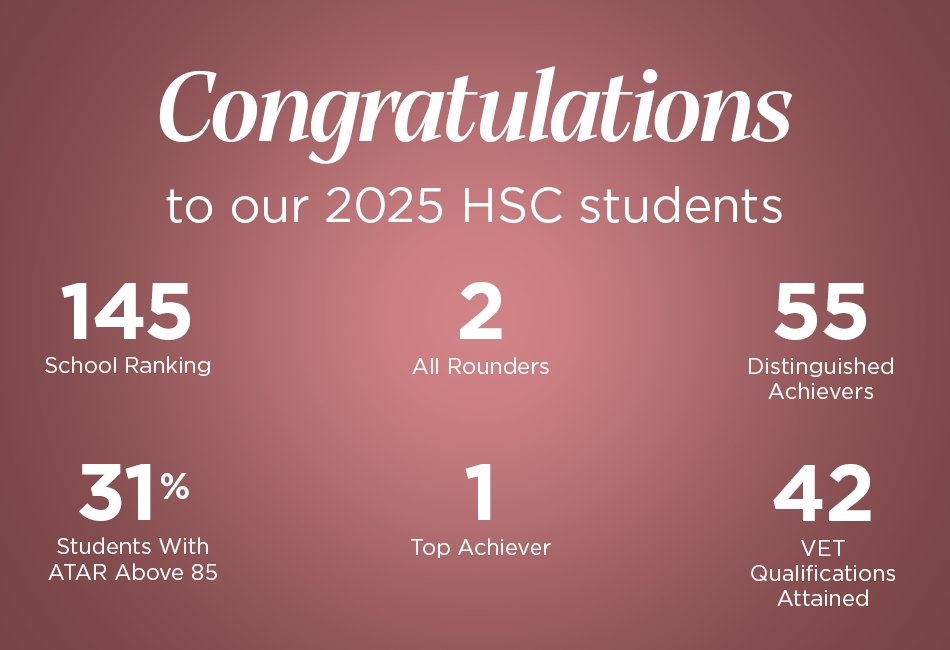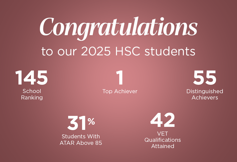 Our school was among the top 150 schools in NSW according to the The Sydney Morning Herald rankings, climbing an incredible 83 places to 145th in the state—the biggest jump across Sydney Catholic Schools.